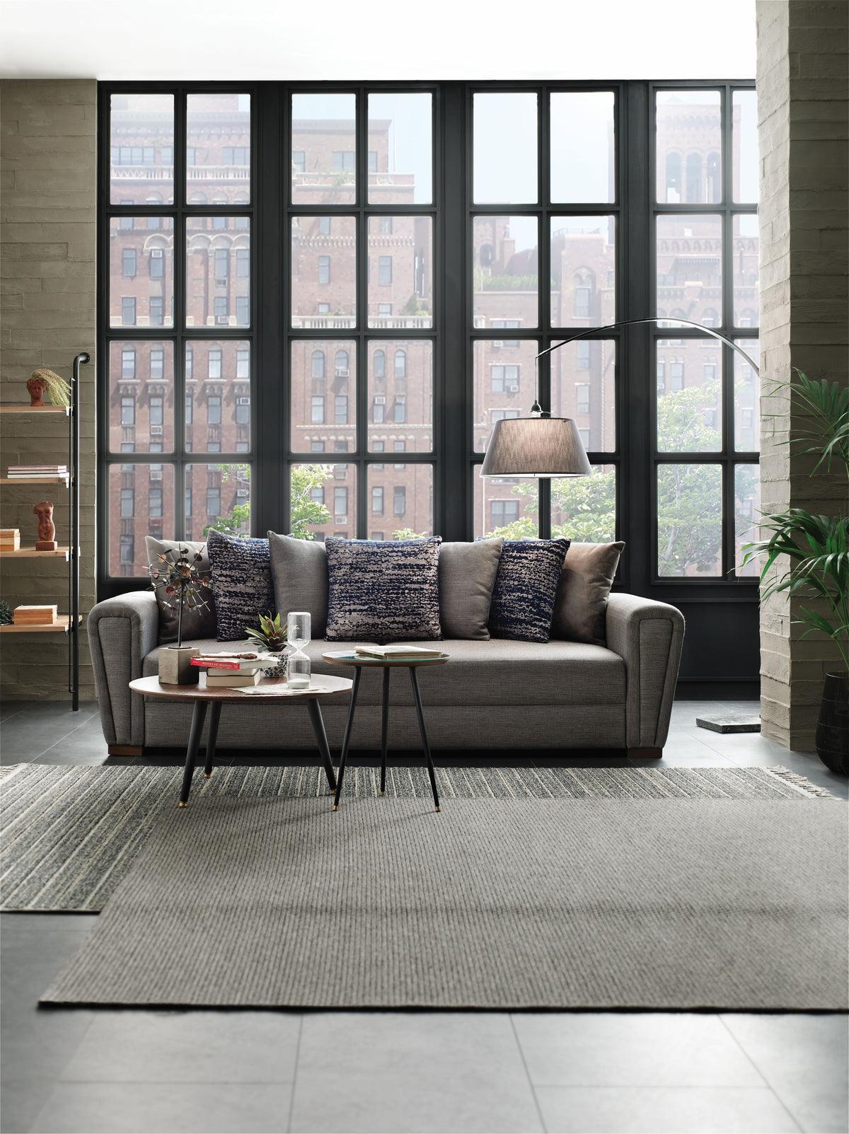 The Brera Sofa Bed is stylish and versatile with its easy-to-open and close bed mechanism, which allows you to transform from sofa to bed and back without hassle. The Brera sofa offers extra storage under the cushions and helps maximize your space's functionality. This sofa can seat three people at once, and its unique brown fabric is enhanced with 7 matching assorted throw pillows. With thick track arms and solid polymer legs, this sofa bed will be a staple in your home for years.