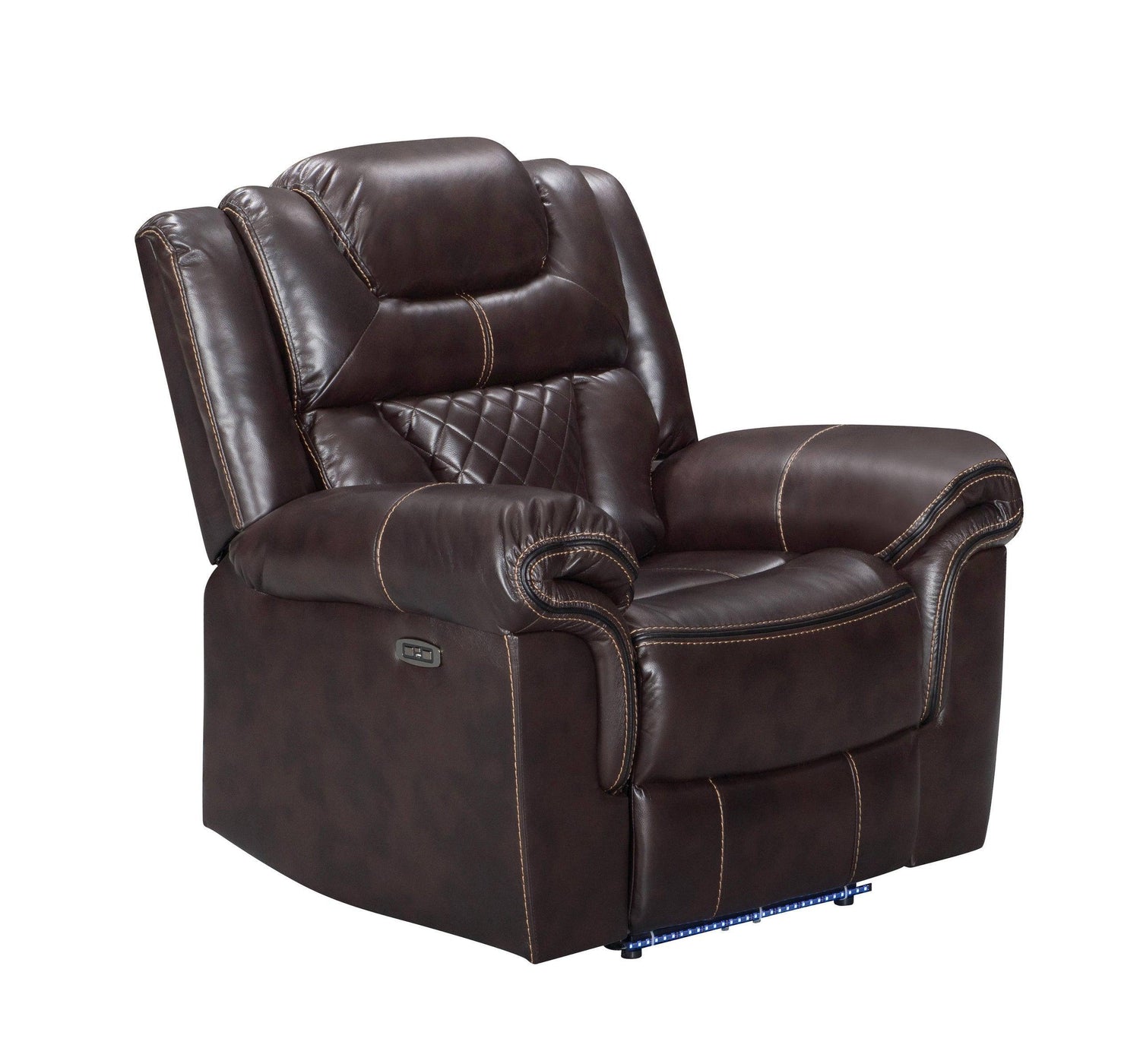 Alexa Brown Faux Leather Gel 3-Piece Power Living Room Set