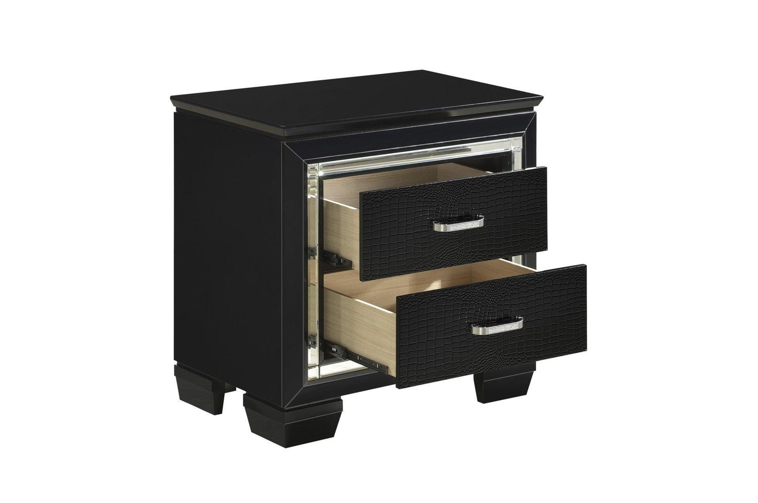 Allura Black Faux Leather Tufted LED Panel Bedroom Set