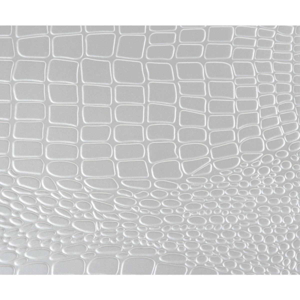 - Faux alligator embossed, textural panels with beveled mirror trim