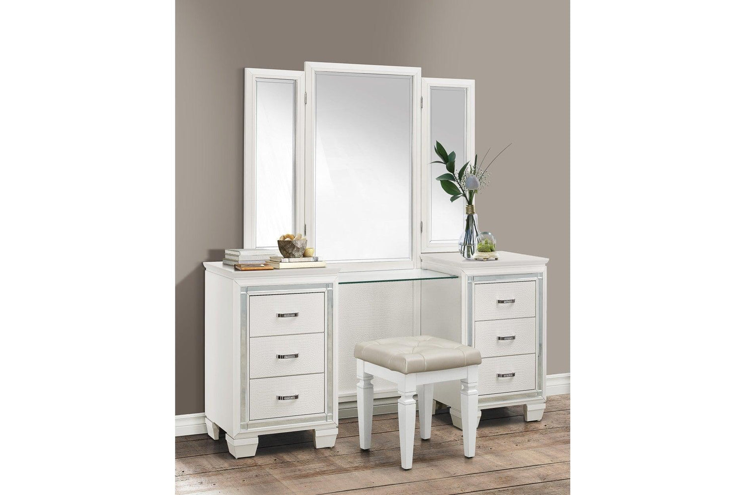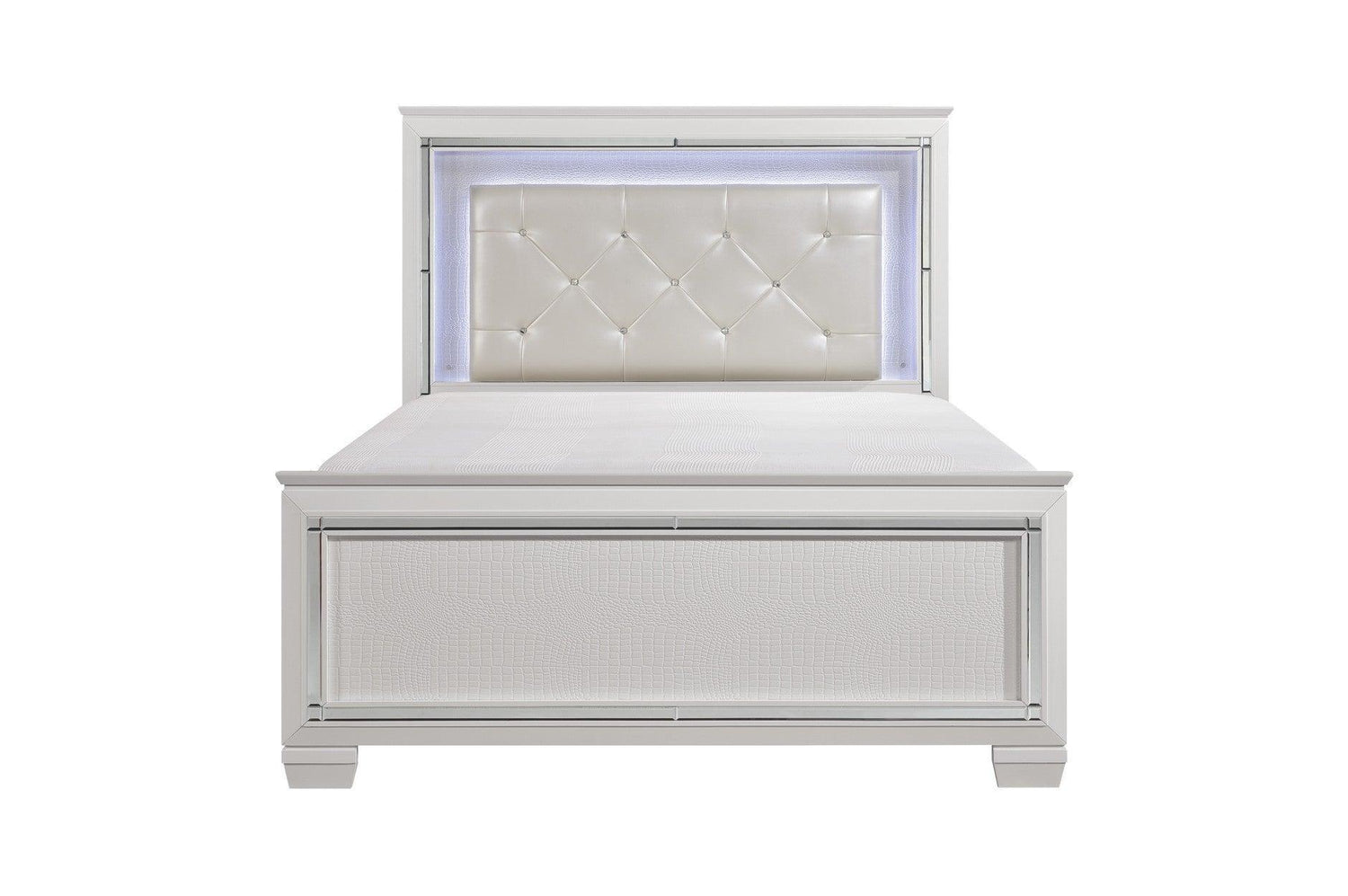 Allura White Faux Leather Tufted LED Panel Bedroom Set