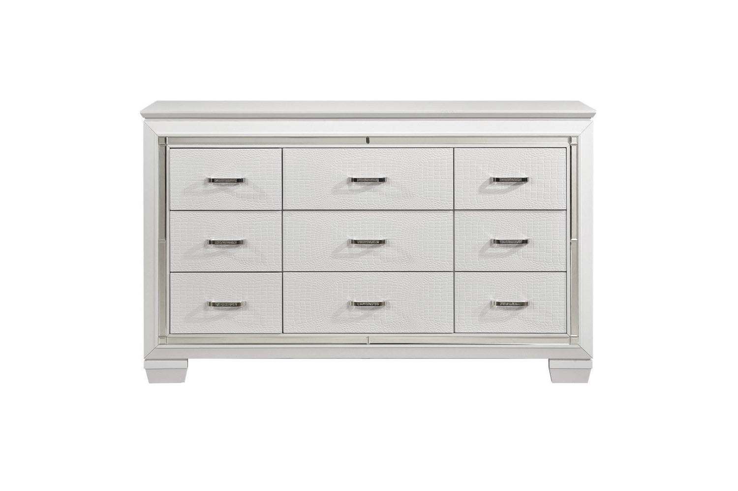 Allura White Faux Leather Tufted LED Panel Bedroom Set - King / 3: Bed, Dresser, Mirror is backordered and will ship as soon as it is back in stock.