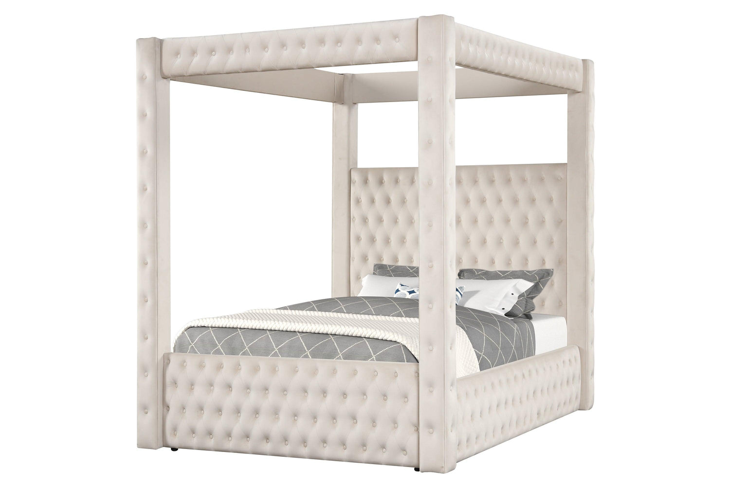 Annabelle Ivory Velvet Upholstered Tufted Canopy Panel King Bed