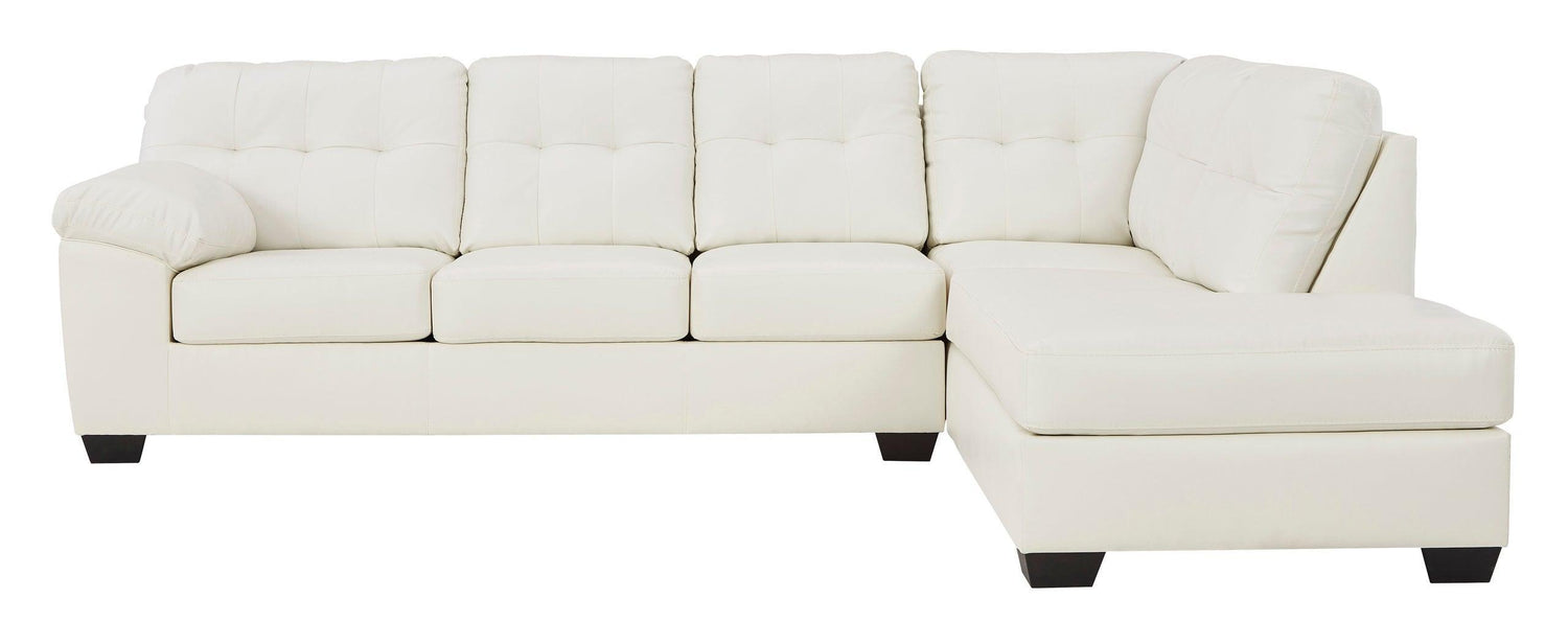 Ashley Raf Chaise White Legs Faux Leather Tufted Sectional