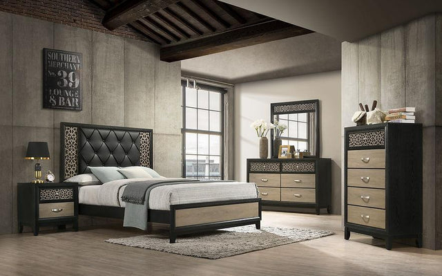 Paro Black Gray Faux Leather Tufted Panel Bedroom Set