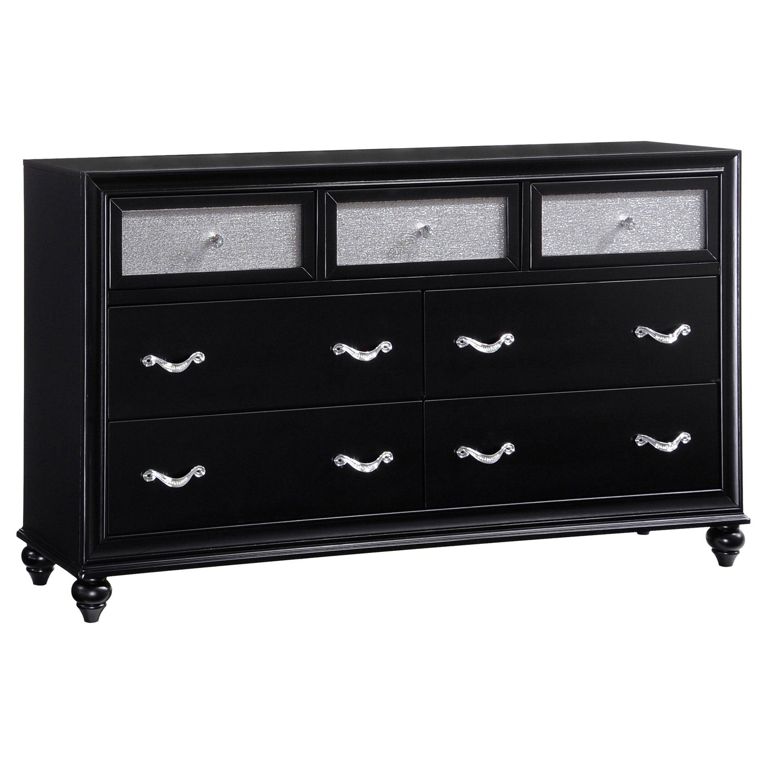 - Glittering, metallic, acrylic drawer fronts and faceted crystal hardware add opulence