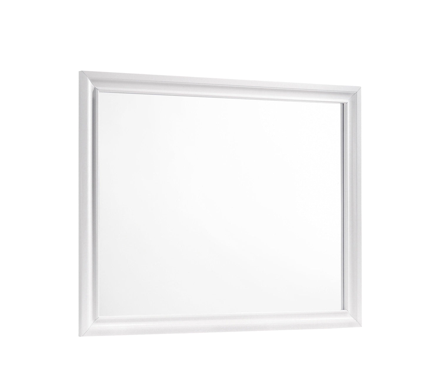 Balance out a bedroom with this gorgeous, rectangular mirror. Its wooden frame is beautifully beveled for a visually appealing appearance. A crisp, white finish gives it a light, airy look. Top-quality craftsmanship ensures maximum durability. Pair it with a matching dresser to bring any bedroom to life.