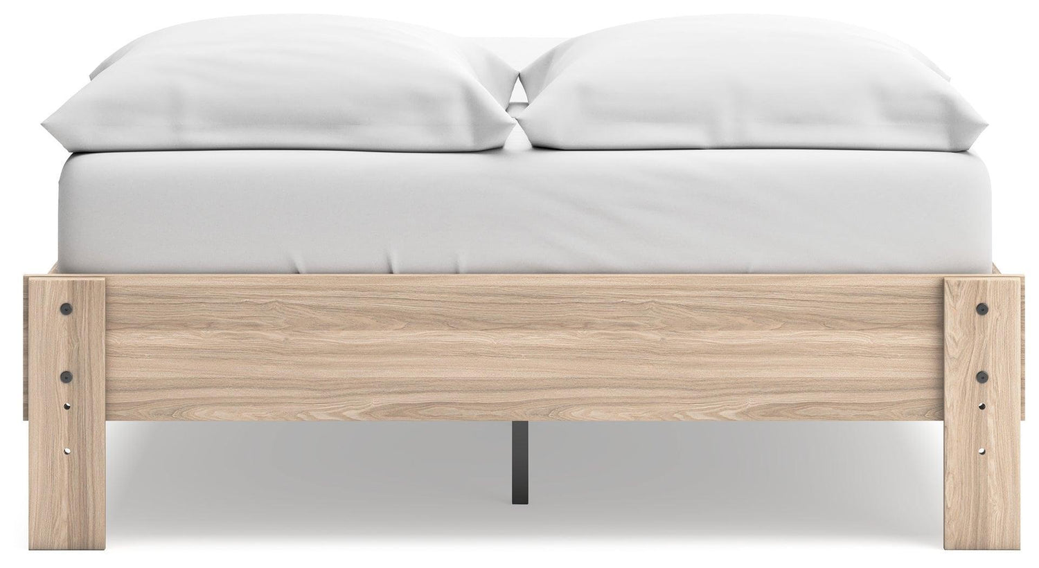 Transform your bedroom into an instant sanctuary. Pairing the look of oak grain with a unique chevron pattern, this platform bed introduces a touch of mid-century modern style that's sure to elevate your space. Catering to your busy lifestyle, this bed is ready to assemble in the comfort of your home.