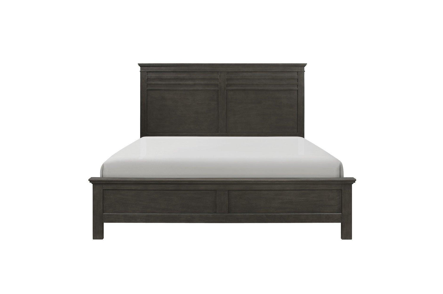Blaire Farm Charcoal Gray Panel Bedroom Set - King / 3: Bed, Dresser, Mirror is backordered and will ship as soon as it is back in stock.