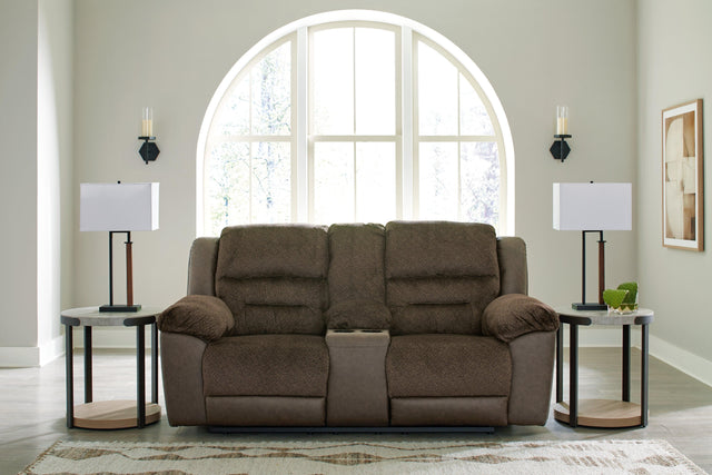 Dorman Chocolate Microfiber Reclining Loveseat with Console