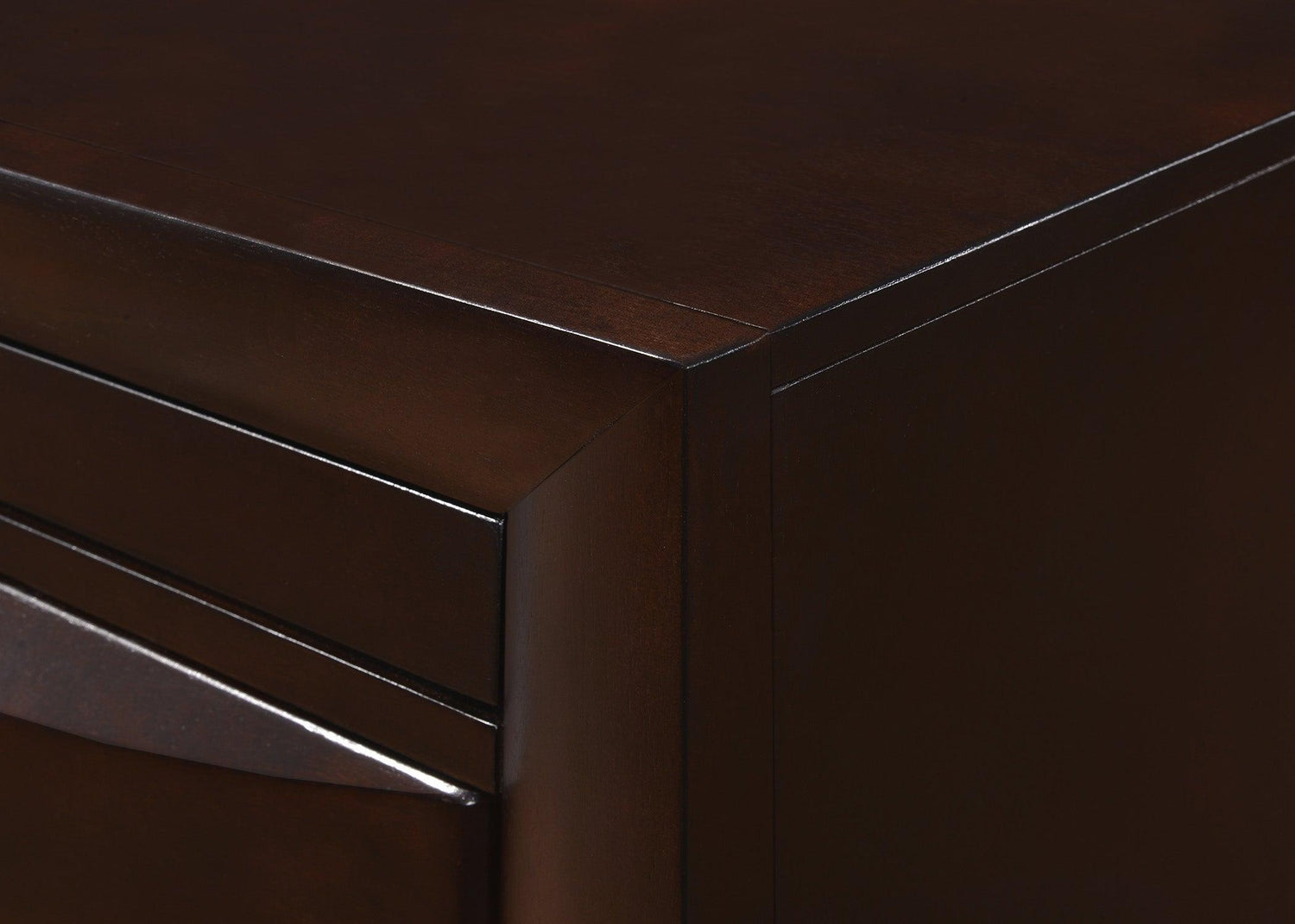 The Emily Dark Cherry Queen Storage Platform Bed is an elegant and classic piece of furniture that adds sophistication and style to any bedroom. The bed is constructed from solid hardwood with a rich dark cherry finish that highlights the natural beauty of the wood grain. The storage platform features 6 drawers, providing ample space for linens, clothing and other items. The headboard is upholstered in a luxurious fabric, giving it a comfortable and inviting look. The overall design is timeless and will bring a touch of elegance to any room. This bed is both stylish and practical, making it a great option for anyone looking to add a little extra storage and style to their bedroom.