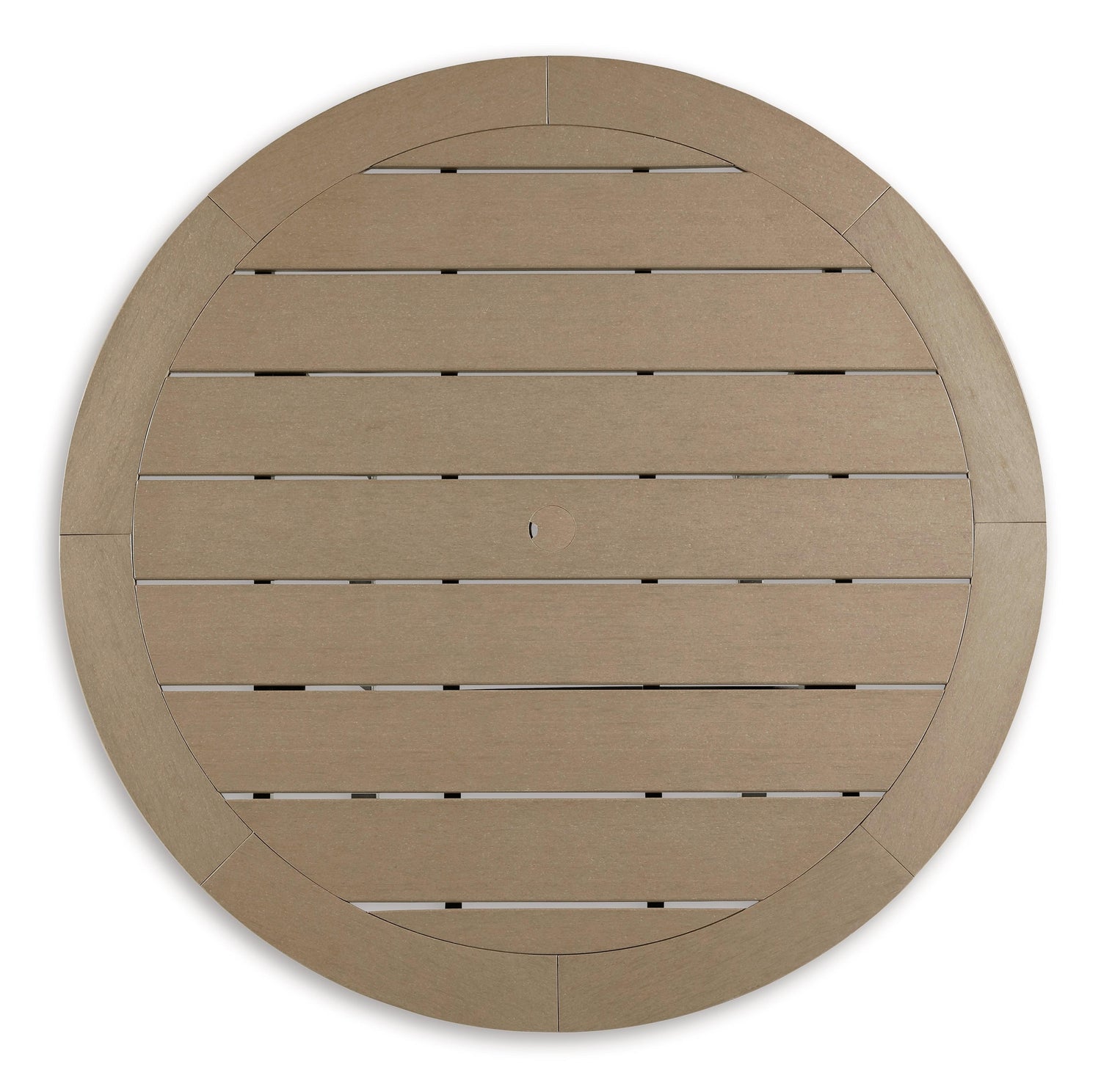 Raise the bar on outdoor living with this round bar table and bar stool set. Crafted for style, comfort and durability, the set impresses with a standout two-tone finish that pairs a light driftwood-look and black finish for twice the interest. Round table design keeps everyone in the flow of conversation, while the stools cater with sturdy armrests, an ample footrest, high shell back and waterfall wrapped seat for curvaceous comfort.