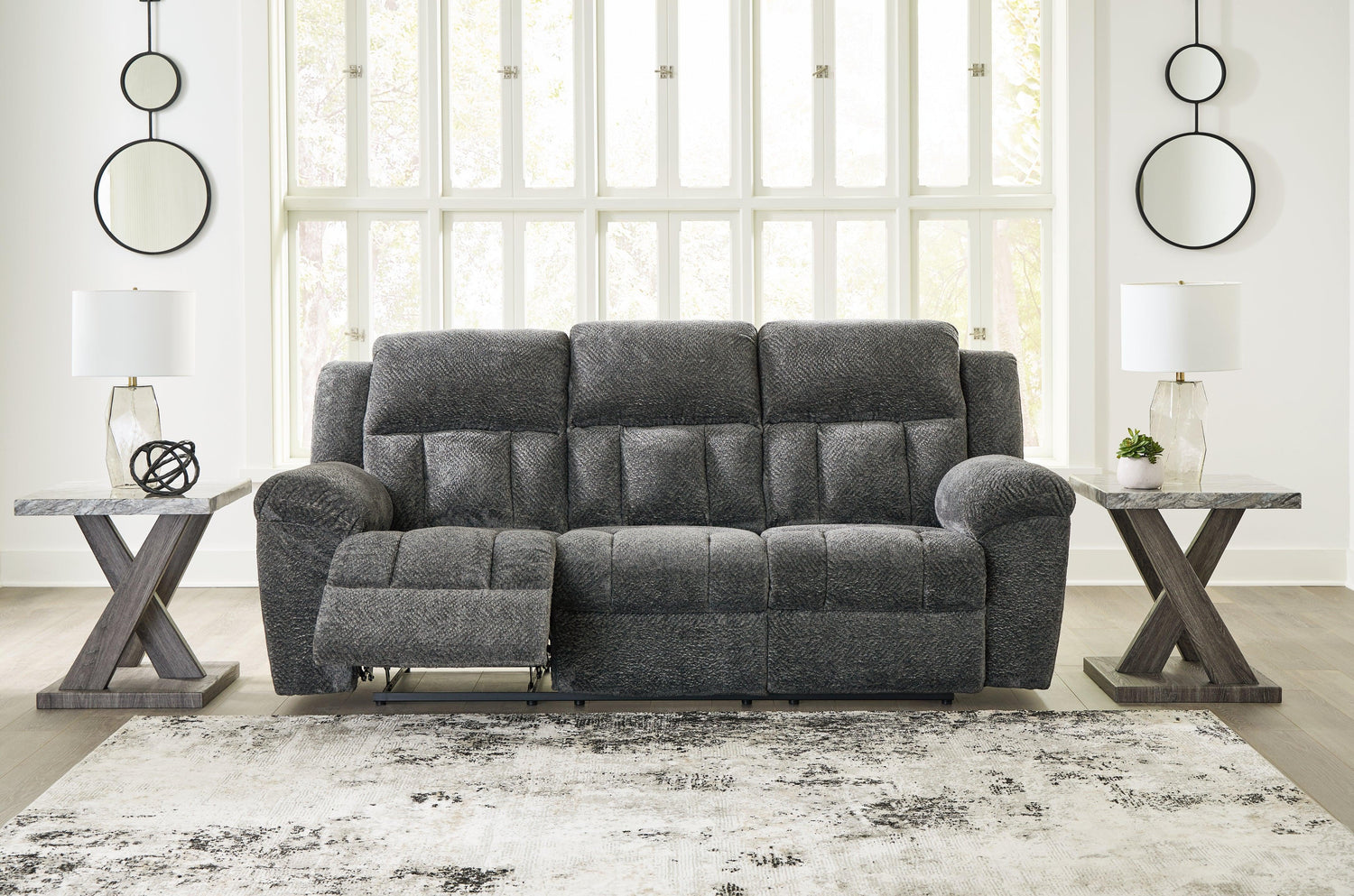 Frohn Graphite Chenille Reclining Sofa is backordered and will ship as soon as it is back in stock.