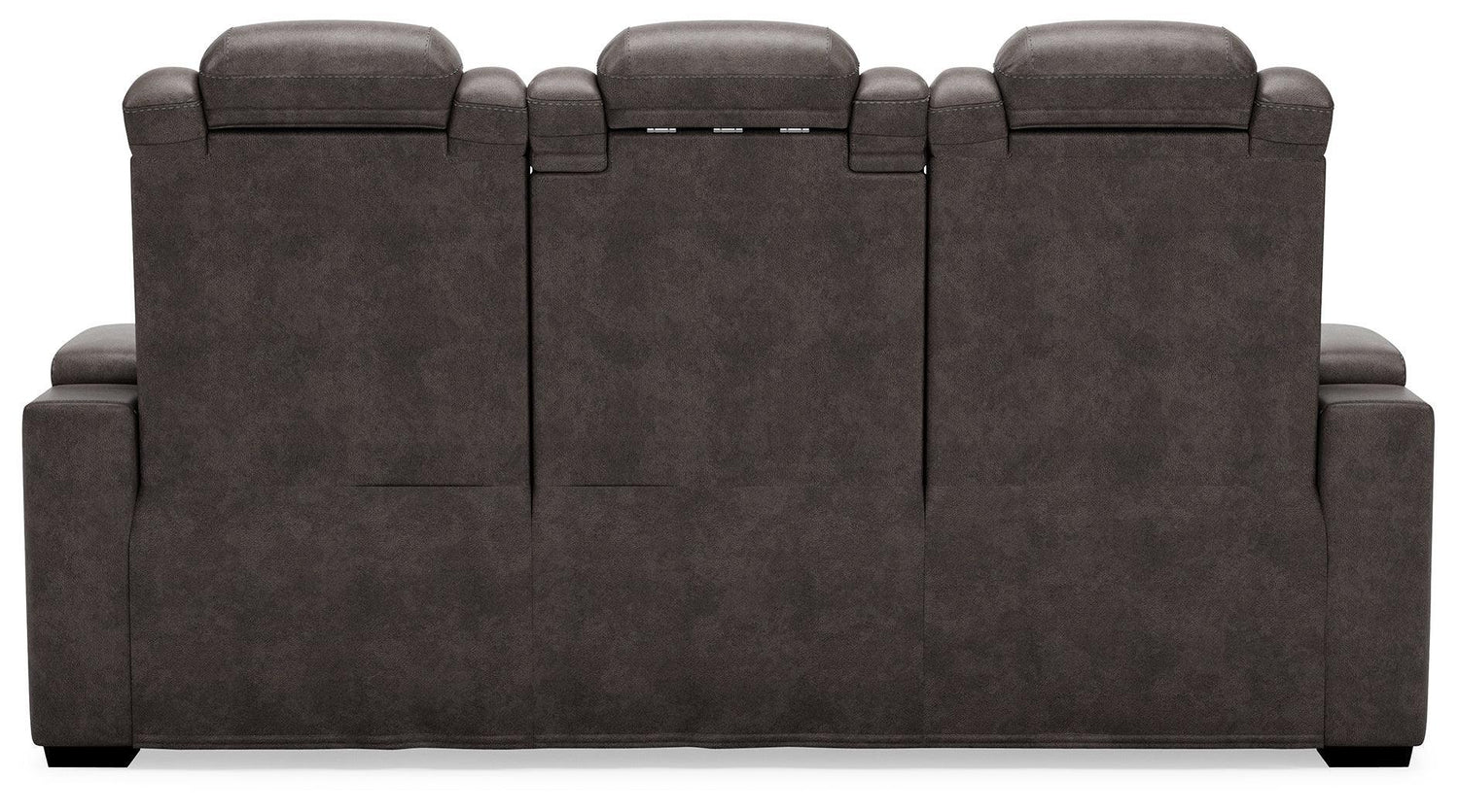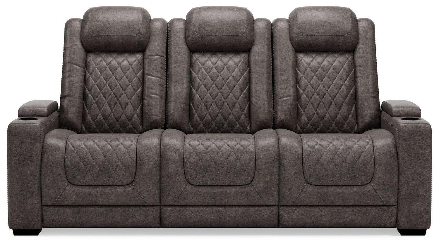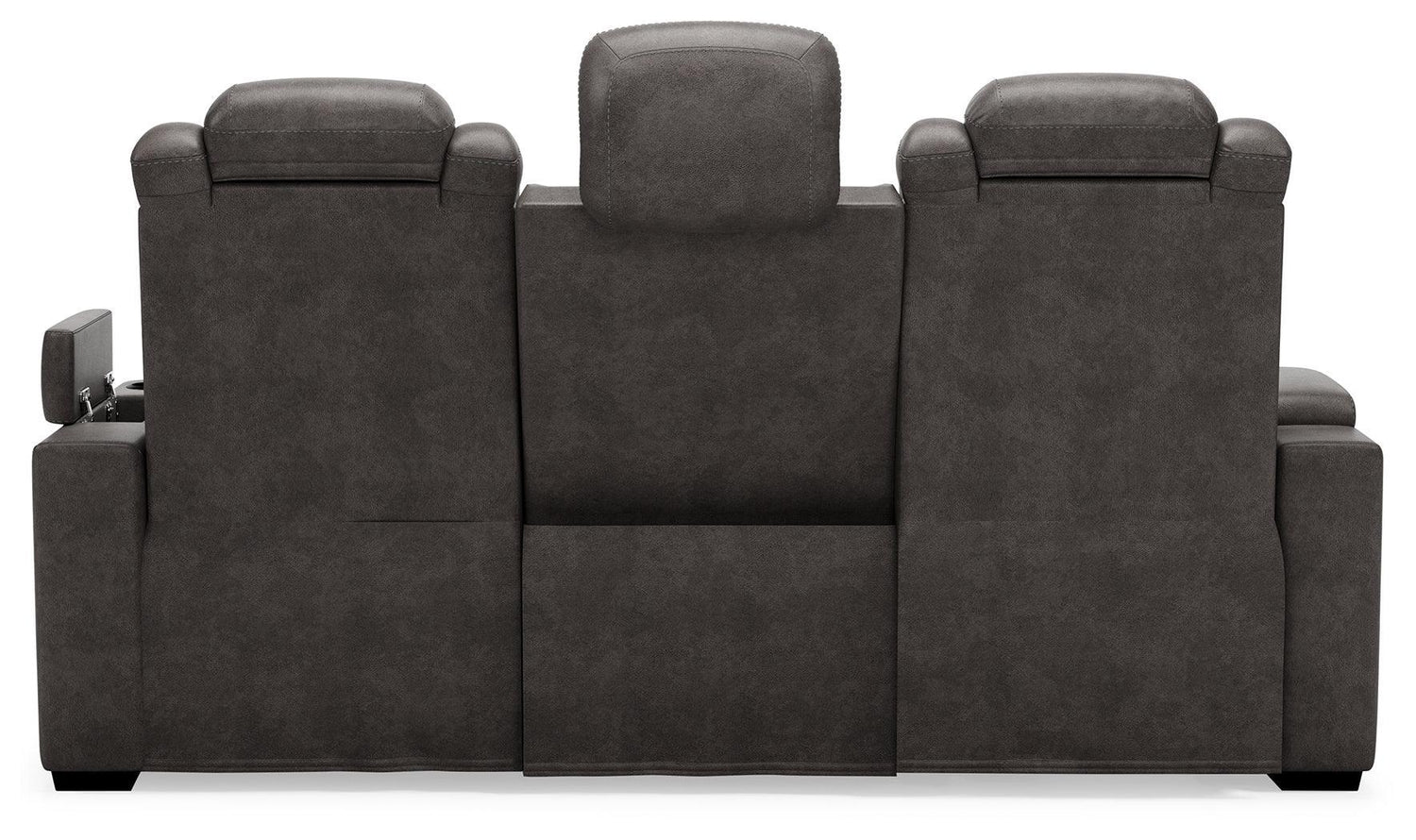Hyllmont Gray Faux Leather Power Reclining Sofa