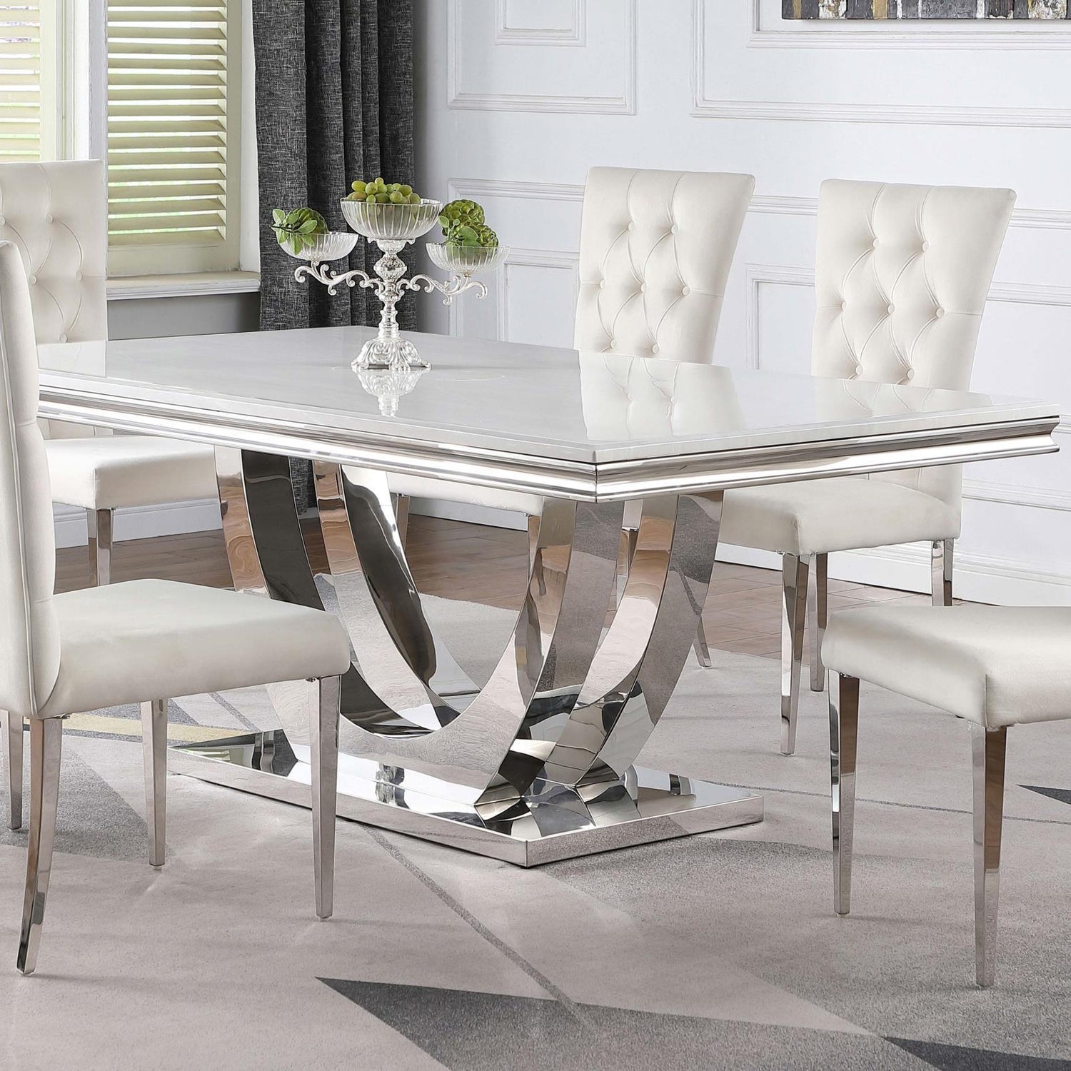 Kerwin Rectangle Faux Marble Top Dining Table White Chrome