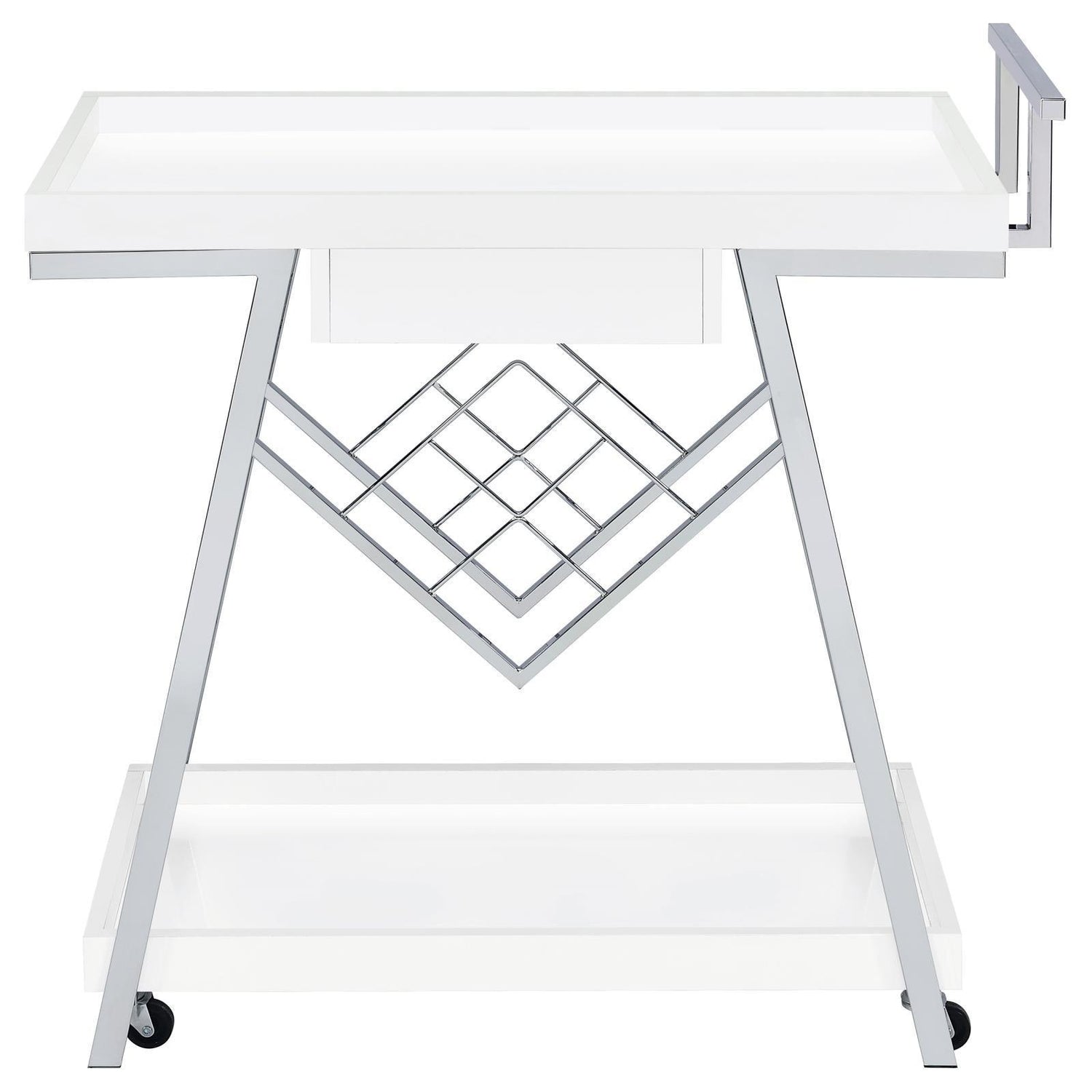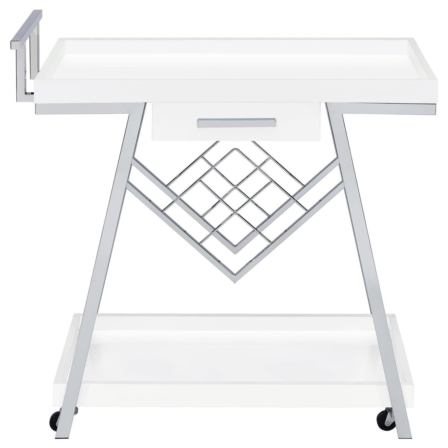 - Item Name: Kinney 2-tier Bar Cart with Storage Drawer White High Gloss and Chrome