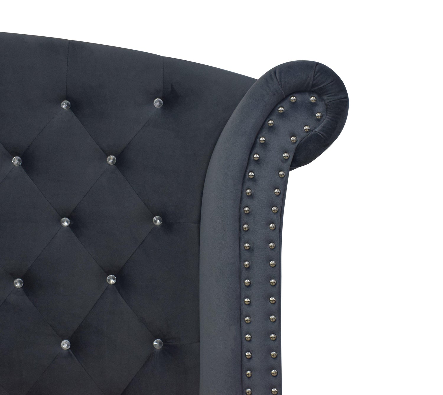 Lucinda Dark Gray Velvet Upholstered Tufted Panel King Bed