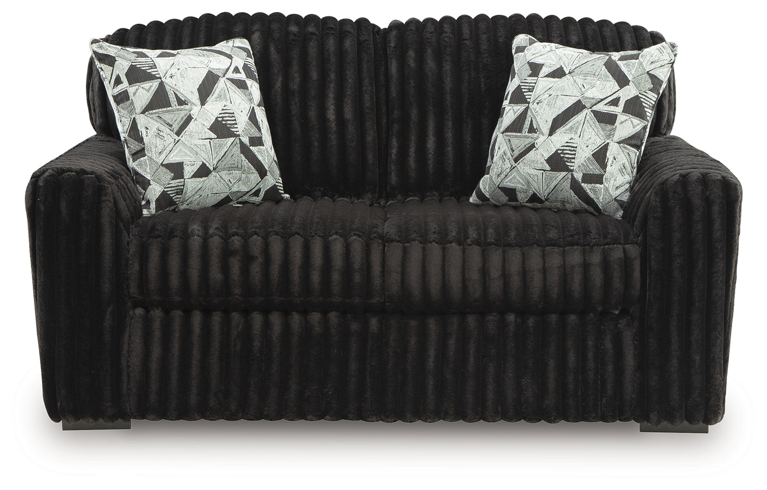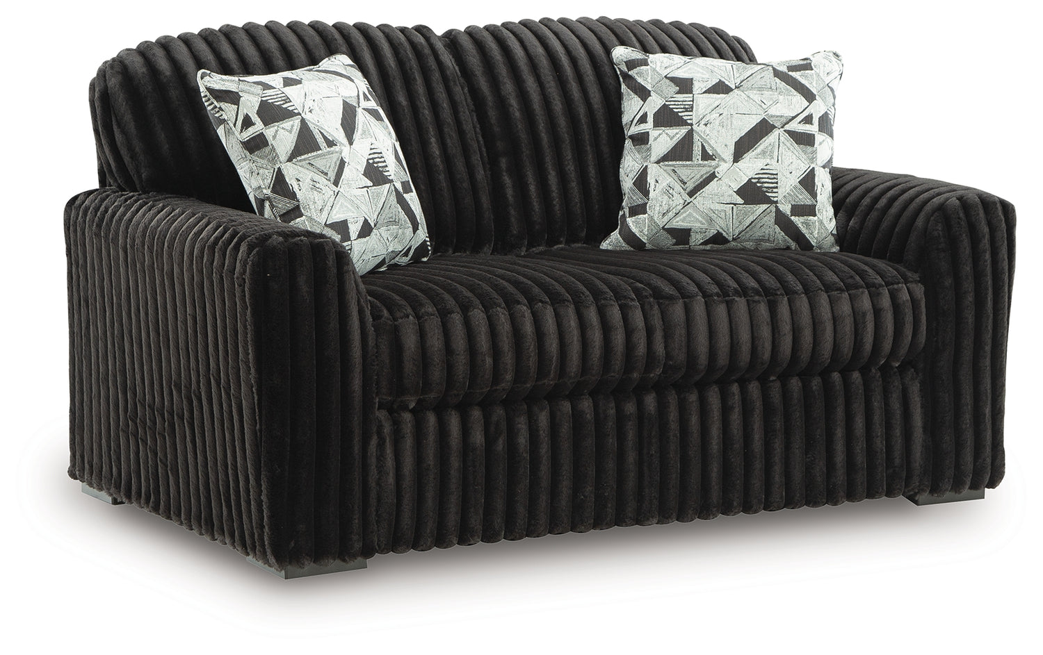 Midnight-Madness Onyx Velvet Loveseat is backordered and will ship as soon as it is back in stock.