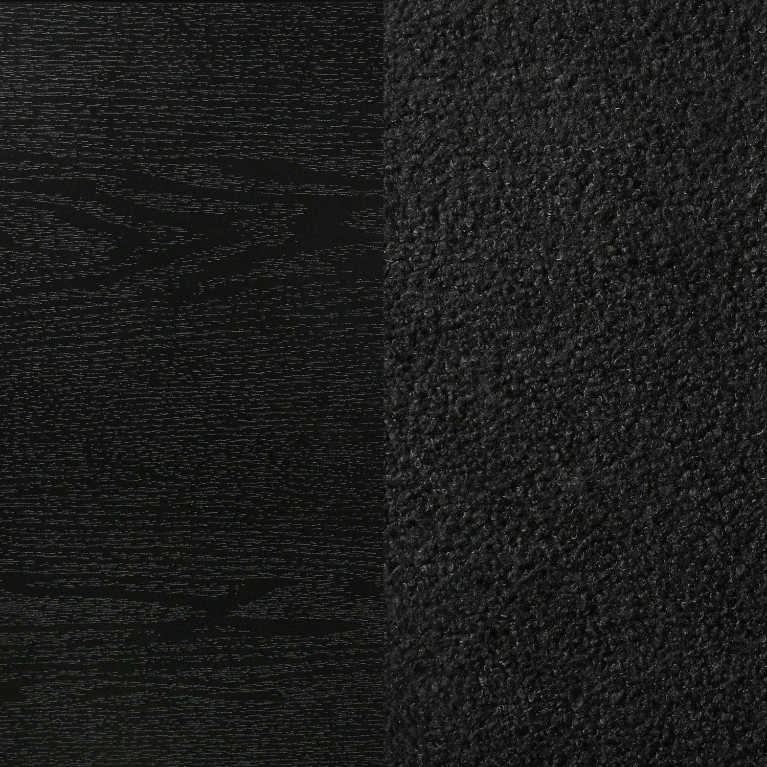 Embrace tuxedo style with the dramatic black and sparkling trim featured on a modern wooden bed. Its simple silhouette brings elegant presence with a rectangular headboard complete with upholstered panels, foam cushioning and black fabric. Glittering trim adds sparkle and elegance in a horizontal stripe on the headboard and vertical stripe on the footboard. The footboard adds a low profile, clean-lined touch, perfect for an open, airy bedroom. Thick side rails and bracket feet complete the bed to perfection.