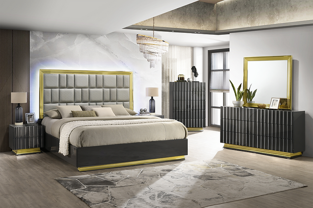 Mona Grey Gold Upholstered Platform Bedroom Set