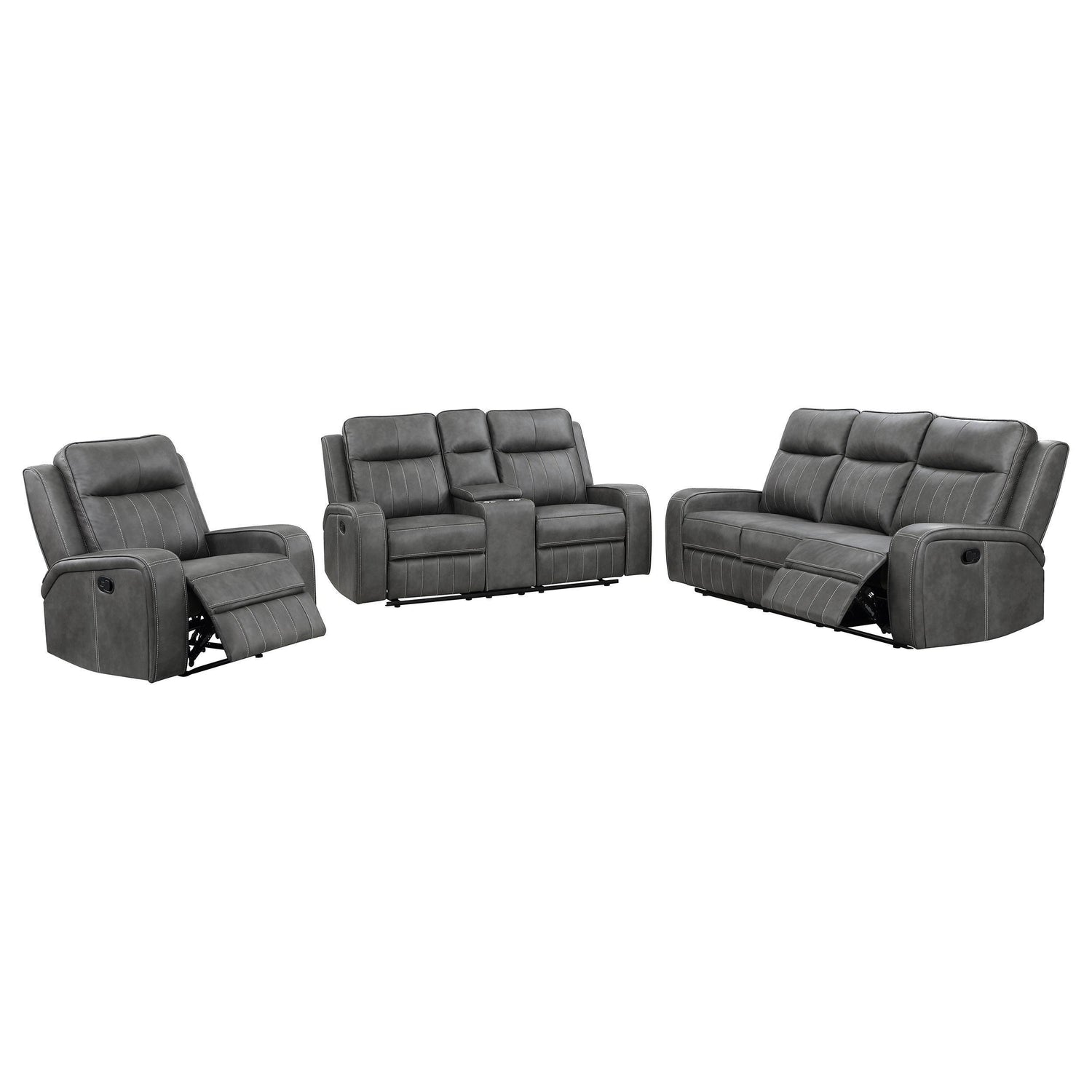 - Item Name: Raelynn 3-piece Upholstered Reclining Sofa Set Grey