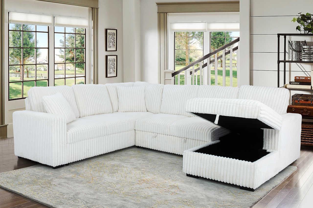 Raha Beige Soft Fabric Storage Sectional with Pull Out Bed