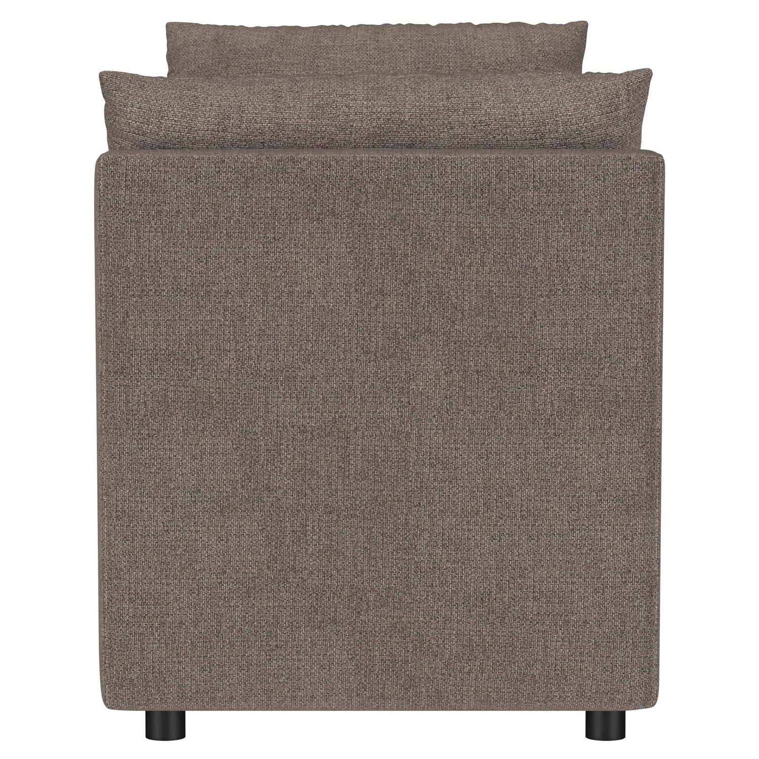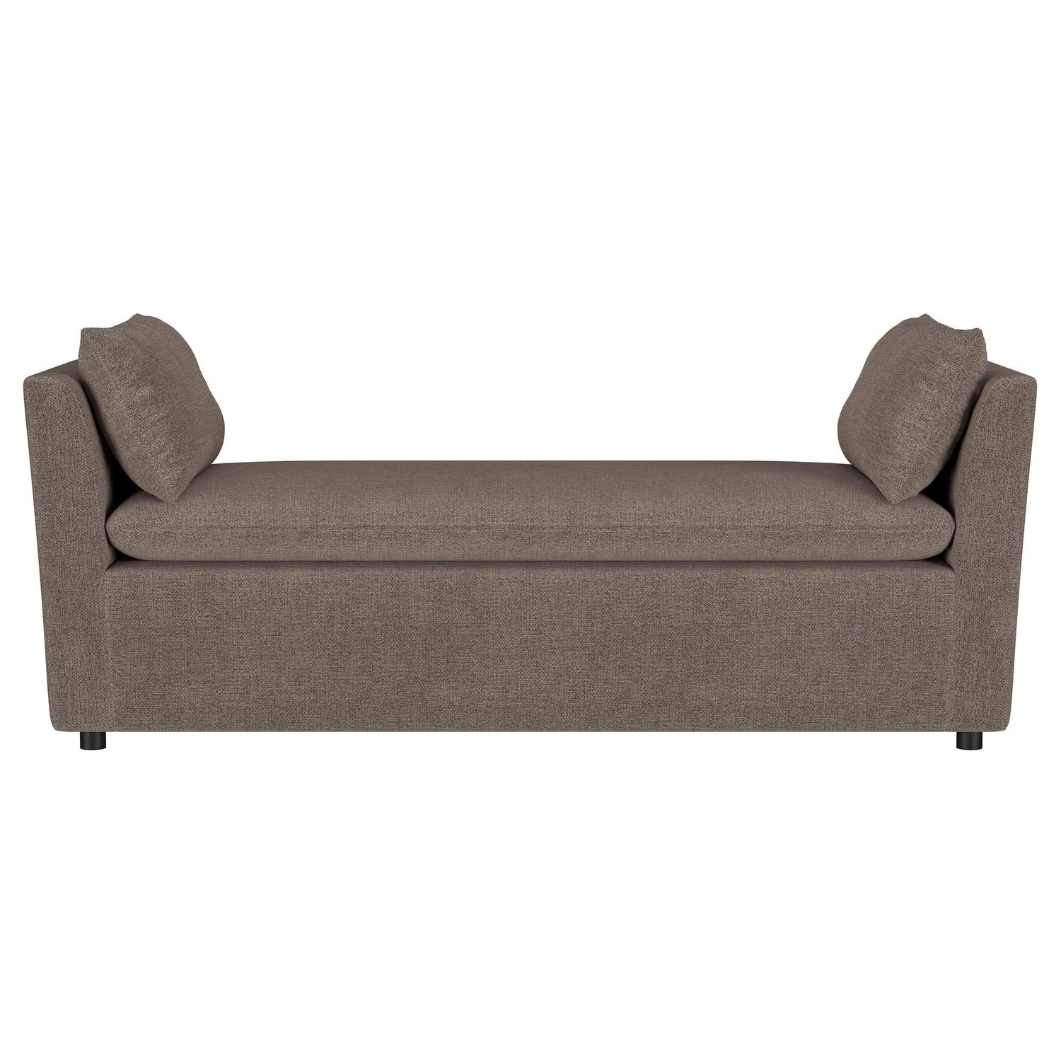 Create a chic spot for lounging or relaxing with a modern upholstered bench. With plush foam cushions and accent pillows, this backless design is ideal for a cozy master suite or stylish living room. It features Asian hardwood framing for excellent durability, and is covered in dimensional brown upholstery. Its neutral palette is rich and refined, easily blending in myriad spaces and surrounding decors. The bench includes gently rounded arms that add a sense of structure, and a pair of accent pillows that add inviting softness.