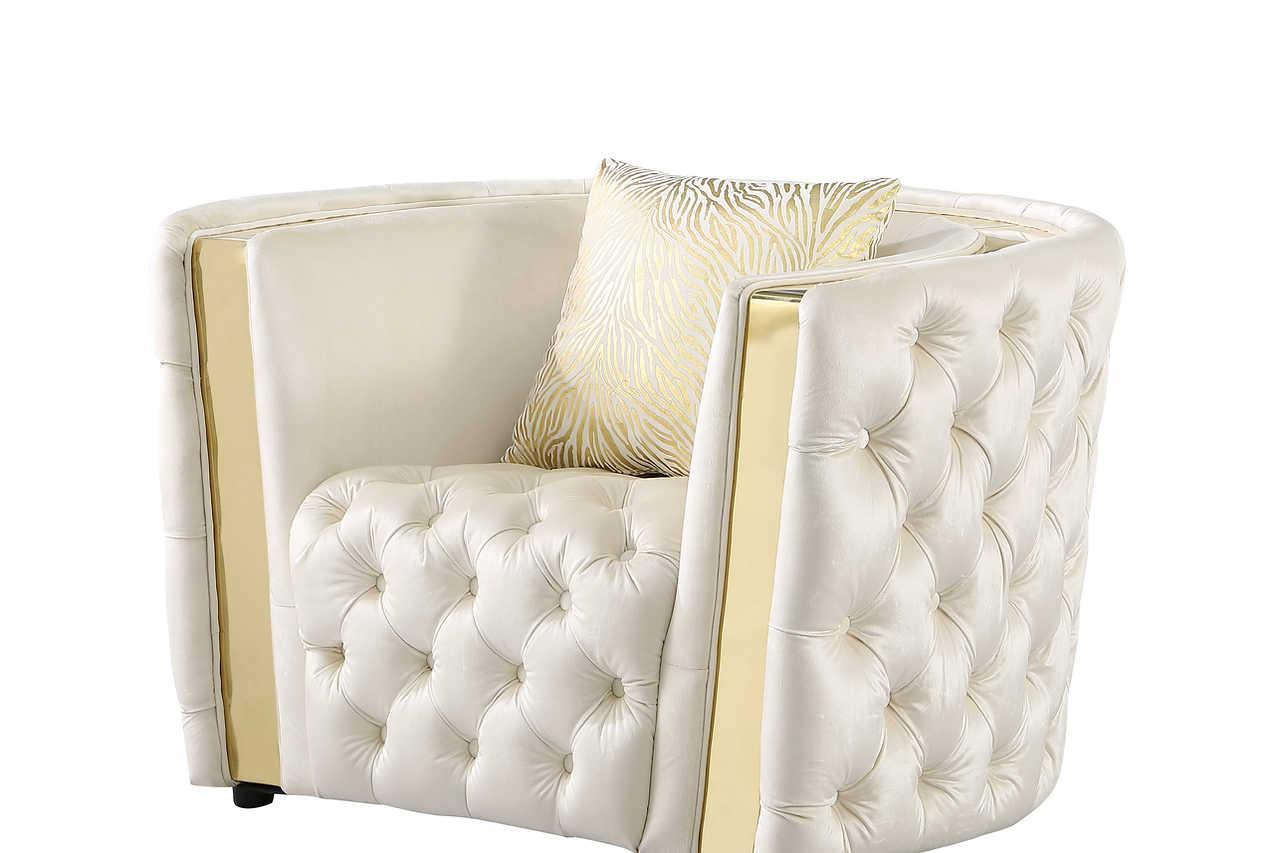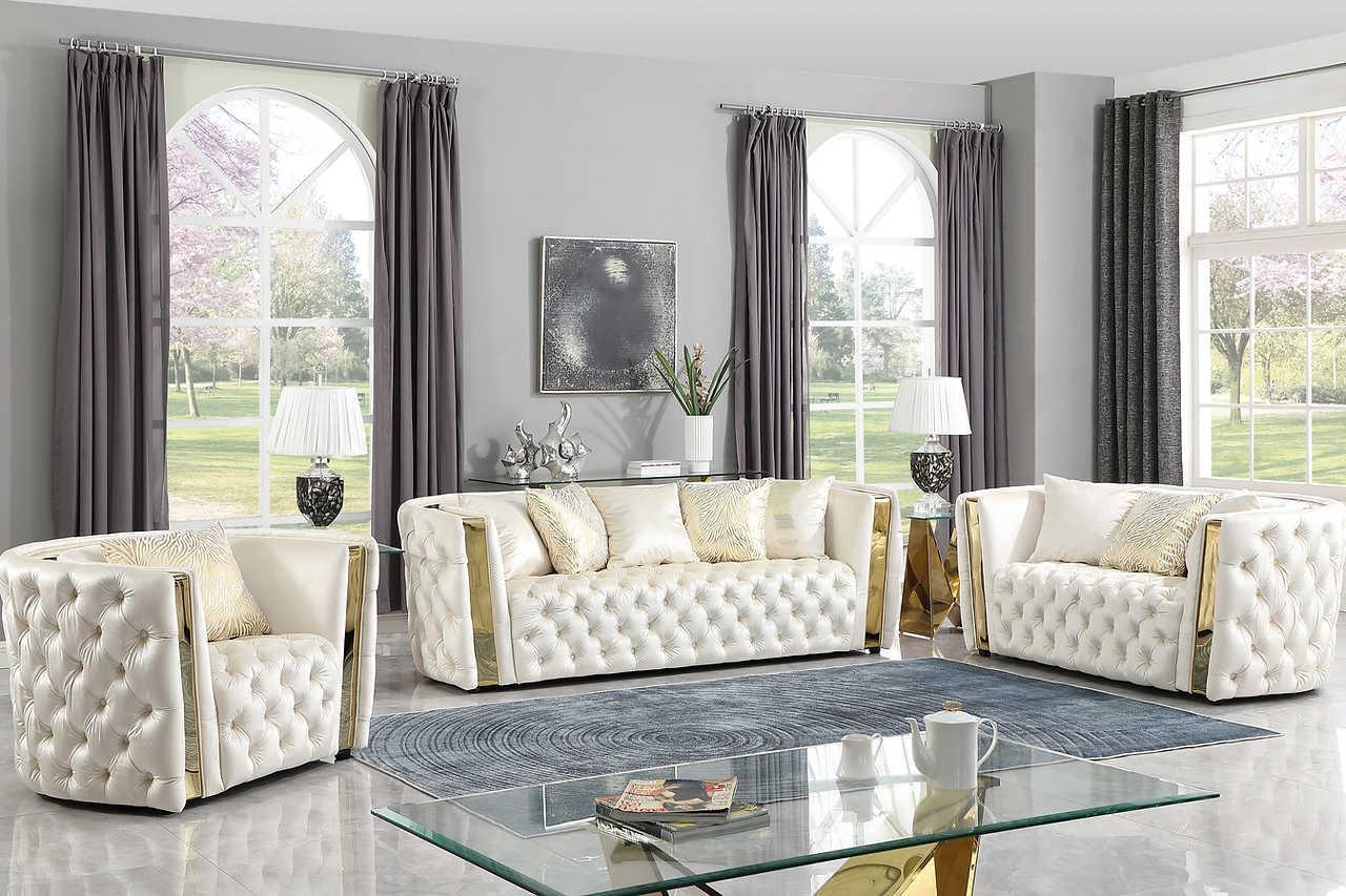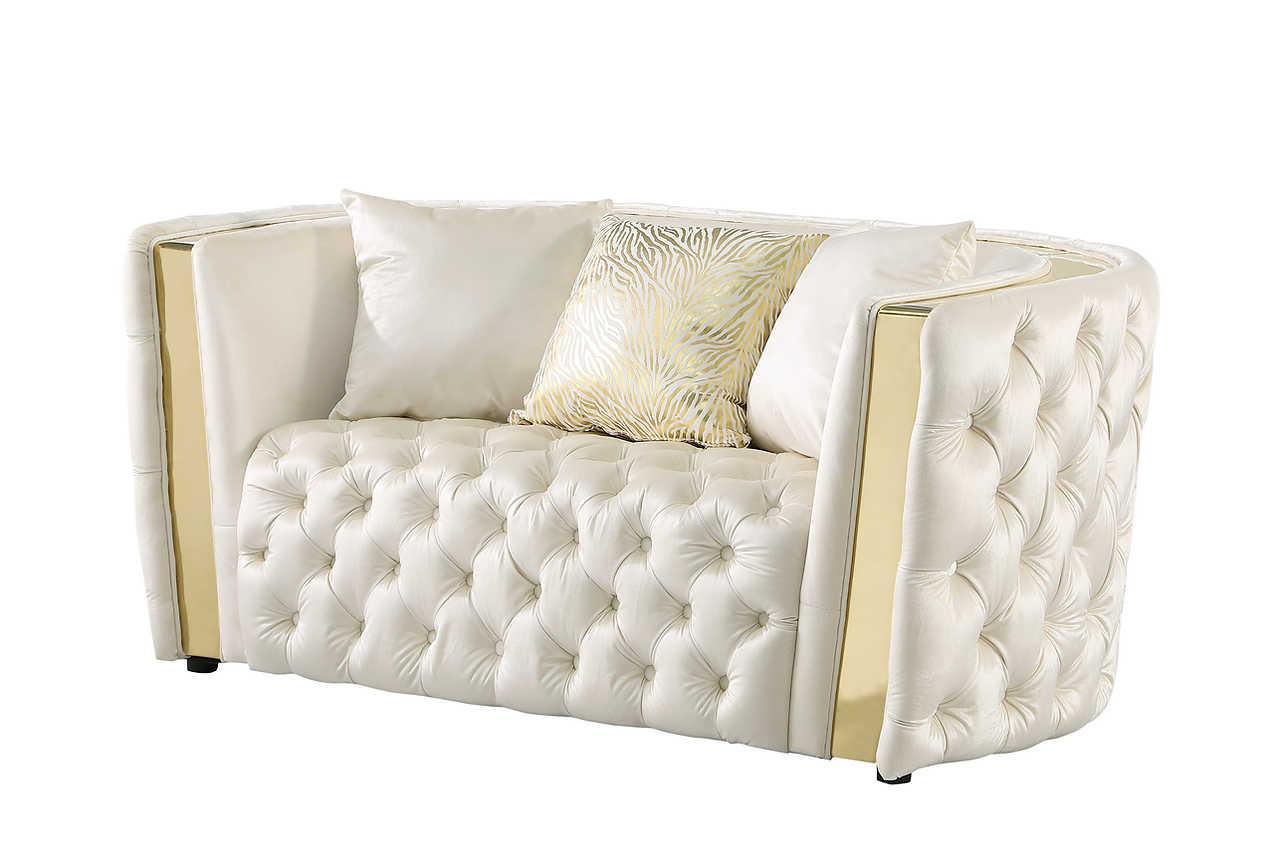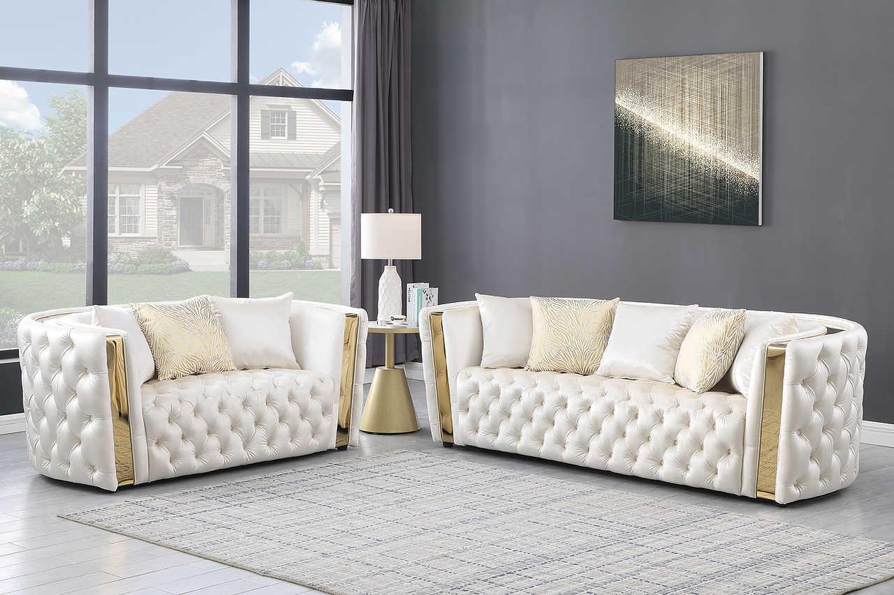 Roka White Gold Tufted 2-Piece Living Room Set