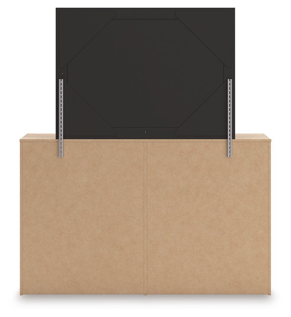 Sanginlane Tan Dresser and Mirror is backordered and will ship as soon as it is back in stock.