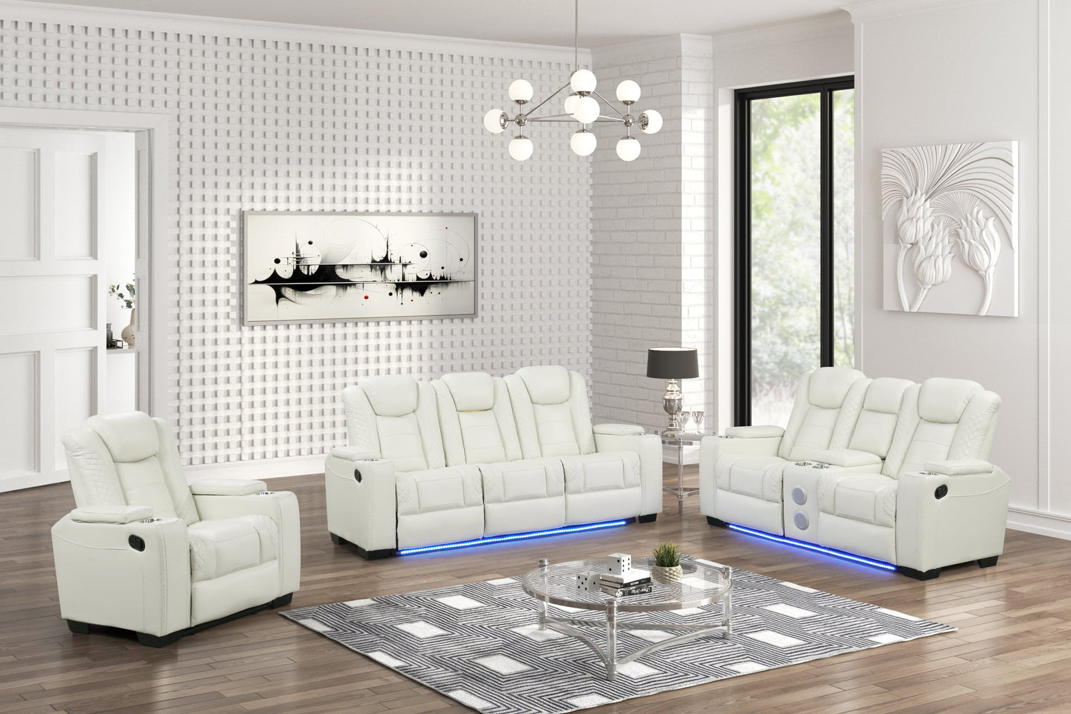 Stefano White 3-Piece Reclining Set