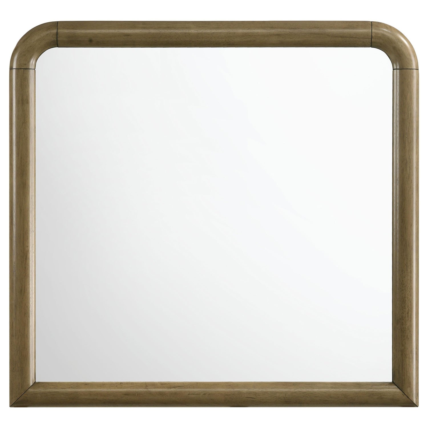 This dresser mirror brings light and elegance to your bedroom with its clean lines and rounded frame. The nutmeg wood finish offers a warm and inviting feel, perfect for complementing both modern and traditional decor. Its curved top and soft edges create a harmonious design, elevating the room's aesthetic while maintaining a subtle presence. Built with durable materials, this mirror adds depth and brightness to your space while ensuring lasting quality. A perfect accent for any dresser.