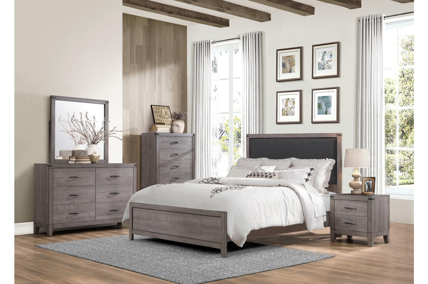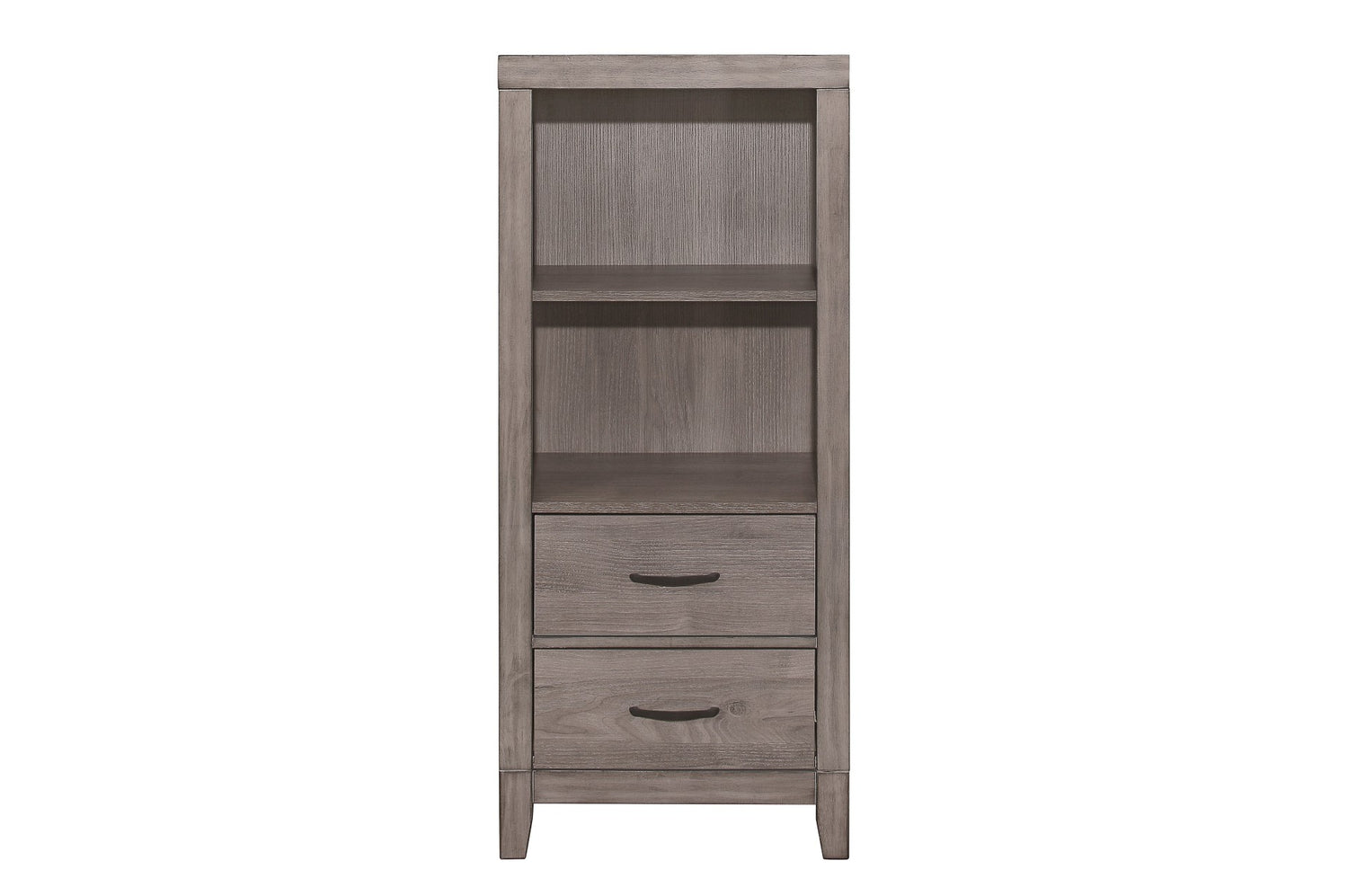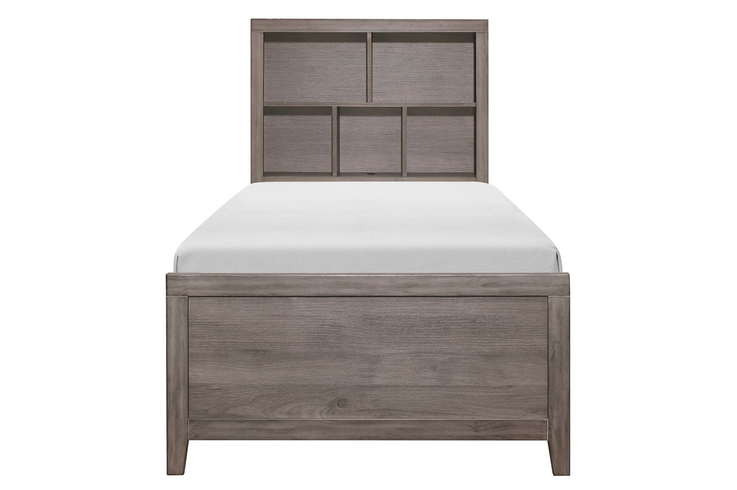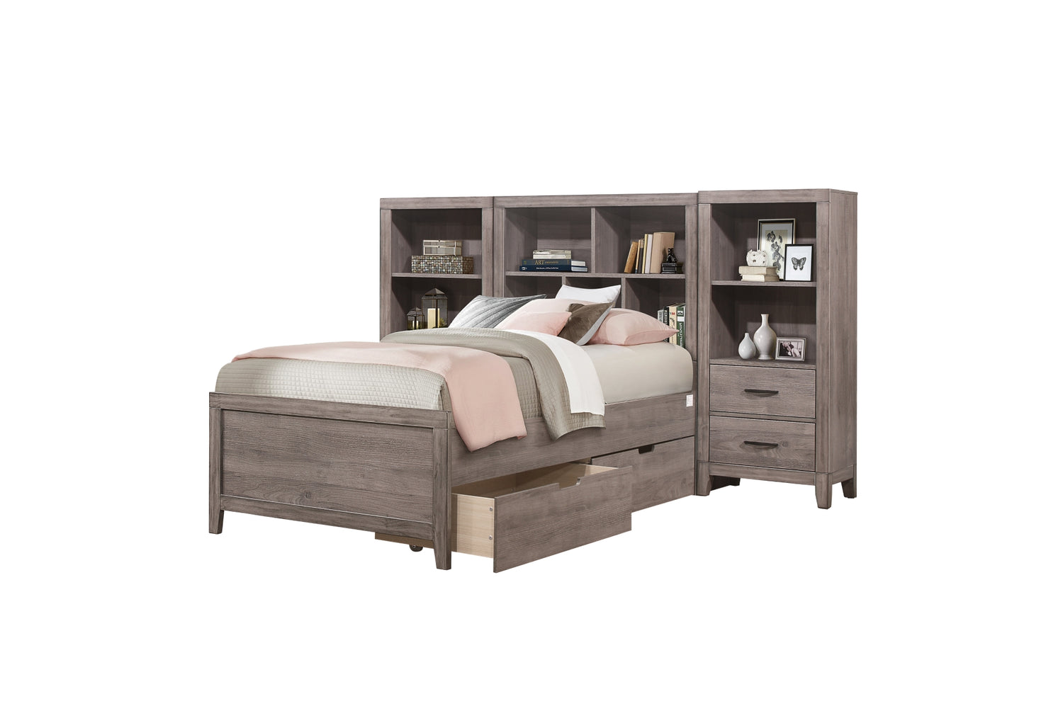 Woodrow Gray Bookcase Platform Bedroom Set - Queen / 3: Bed, Dresser, Mirror is backordered and will ship as soon as it is back in stock.